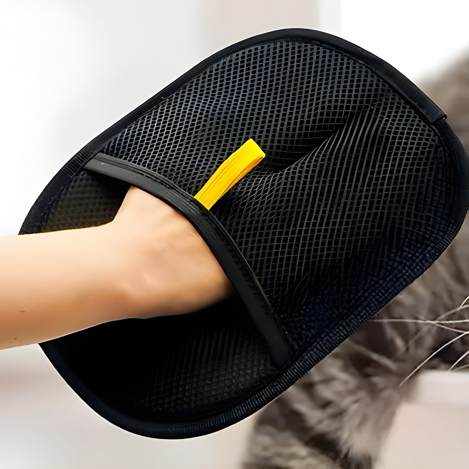 Made with lightweight, breathable mesh so your hand stays cool while grooming.